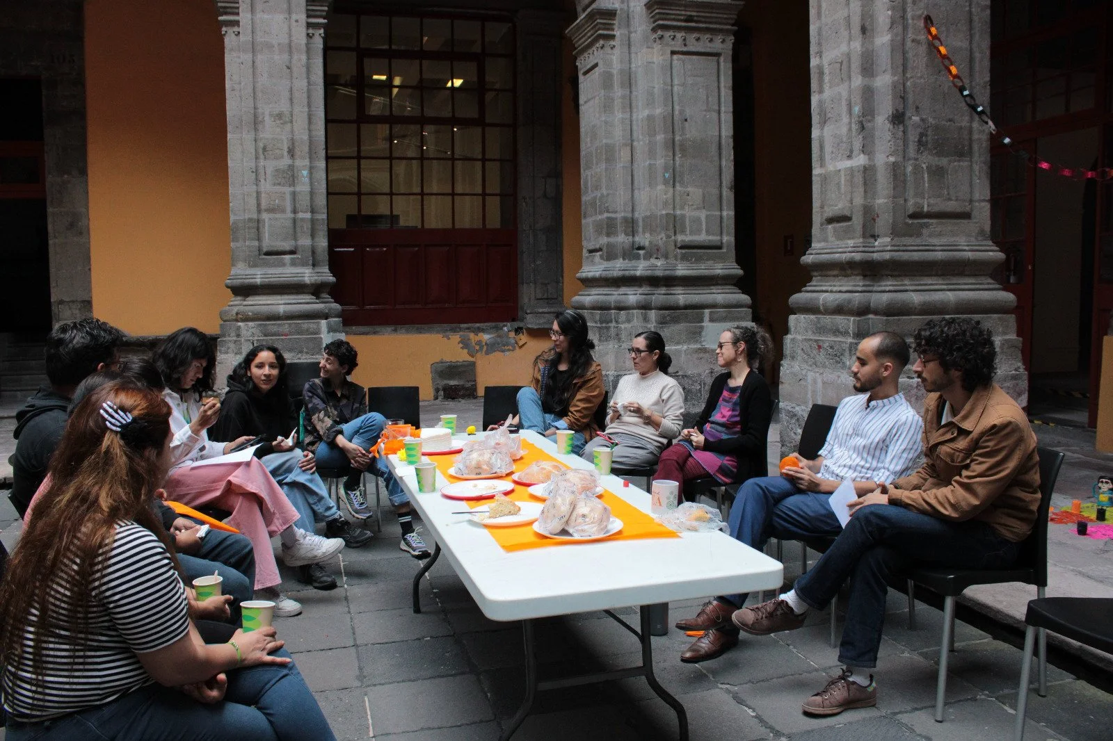 Durante la mañana, reunidos alrededor de la ofrenda, en el patio central, compartimos anécdotas, memorias y distintas percepciones sobre la muerte. Fue un momento íntimo y profundamente reflexivo, en el que comprendimos que recordar también es un acto comunitario: una forma de acompañarnos en nuestras pérdidas, pero también de reconocer la vitalidad de quienes nos precedieron.